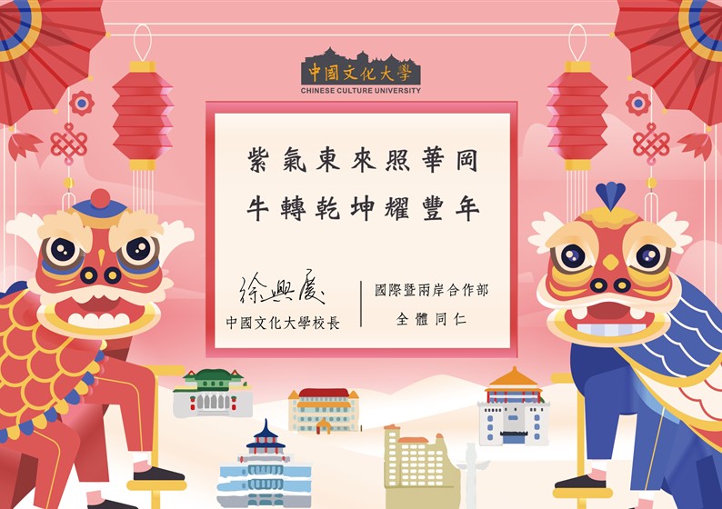 台湾中国文化大学发来新春祝福:“新春佳节来临之际,在此献上衷心的祝福与问候。期待在新的一年里,贵我两校继续加强合作交流,携手共创辉煌。中国文化大学祝您健康、平安、事事顺心!”