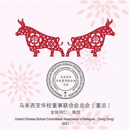 马来西亚华校董事联合会总会送上新春祝福:牛来转运迎新春。春节在即,新的一年又到来。在这辞旧迎新之际,祝贺新春快乐!身体健康!万事大吉!合家欢乐!财源广进!吉祥如意!恭喜发财!今年是牛年,有“牛”就有得。得祥云笼罩,享幸福安康,乐阖家团圆。得吉星高照,助事业有成,兼财源广进。得温馨祝福,祝一生平安,愿快乐到老。